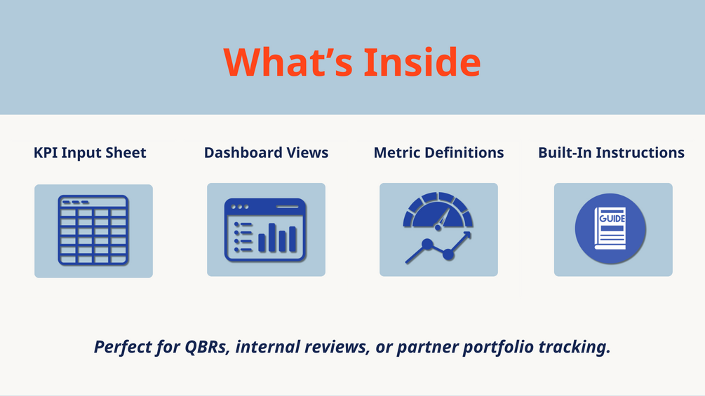 • KPI Tracker Sheet – Pre-defined metrics for tracking influence, pipeline, win rates, attach rates, and more