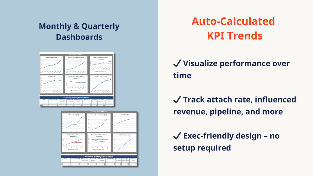 A plug-and-play Excel dashboard to track the health, performance, and impact of your strategic partner or GSI program—no BI tools required.